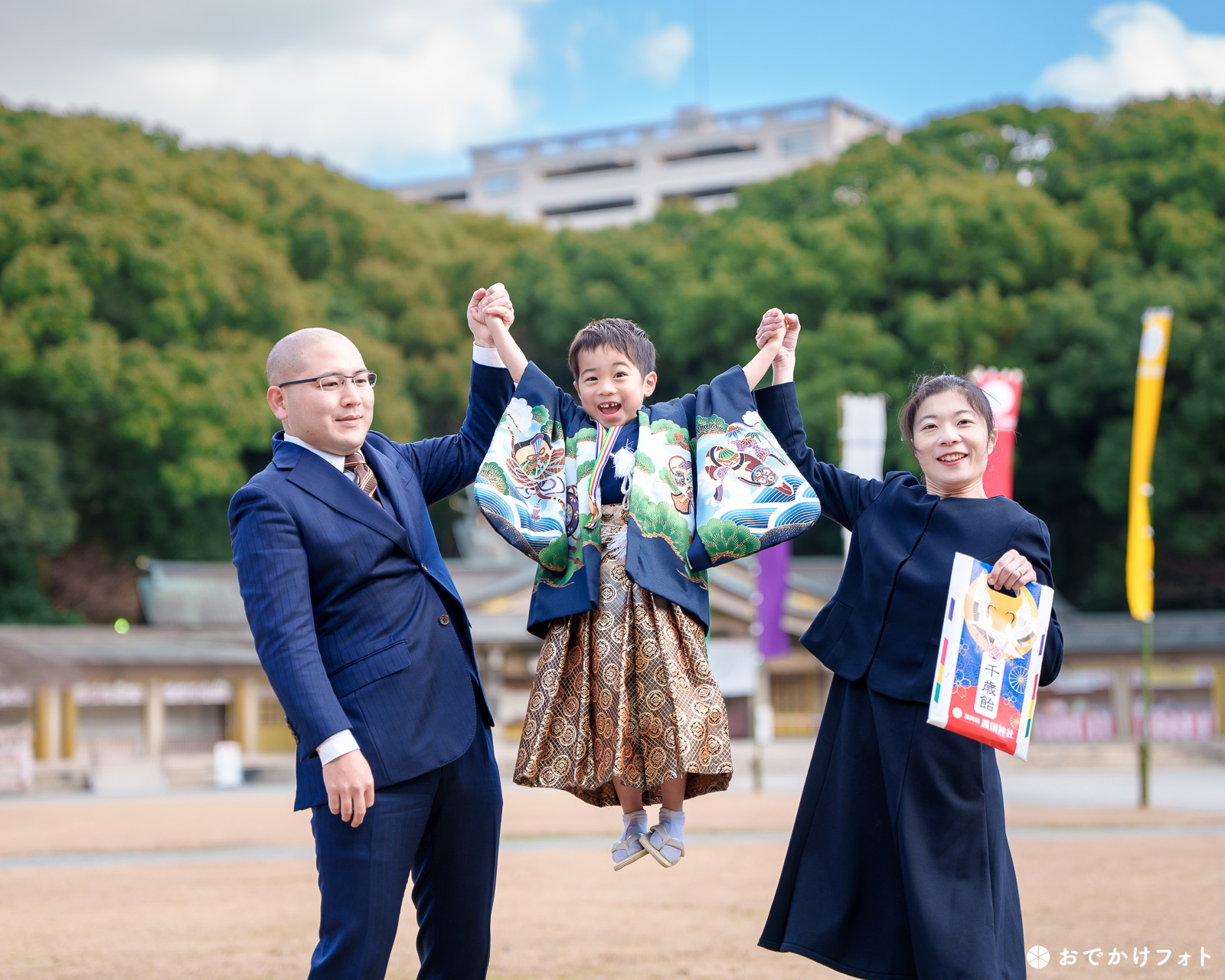 2025年1月撮影 福岡縣護国神社で七五三のロケーションフォト出張撮影、走ったり飛んだり元気よくお参りが出来ました☆ 佐賀県のW様